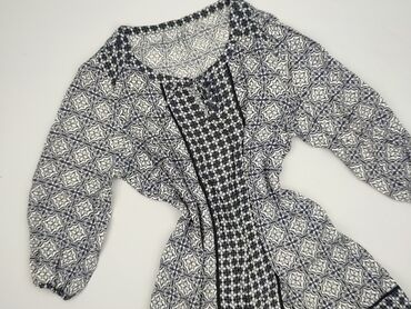 Tunika damska z miękkiej, elastycznej dzianiny, rozmiar XL. - Krój prosty, długość do połowy uda, rękaw 3/4. - Dekolt w kształcie litery V. - Wzór: geometryczne, koncentryczne okręgi i krzyżujące...