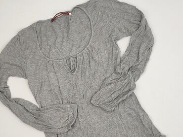 Szara tunika/bluzka damska HOUSE – rozmiar S - Fason: luźna, wydłużona tunika z długim rękawem - Kolor: jasny melanż szary - Kontrastowe wykończenia: czarne lamówki przy dekolcie, mankietach oraz ...