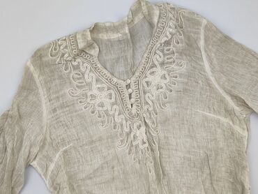 Tunika/żakiet damski z krótkim rękawem, rozpinany na guziki z przodu. - Kolor: ecru/kremowy - Rozmiar: XL (na metce) - Fason: luźny, z lekko opuszczoną linią ramion; dół lekko zaokrąglony - Ręk...