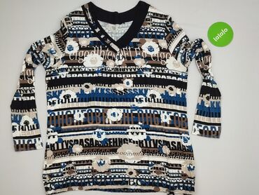 Bluzka damska Iwella, rozmiar 48. - Krój: z długim rękawem, dekolt z falującą listwą i dwoma dekoracyjnymi guzikami - Przód: wzór kwiatowo‑ornamentalny w odcieniach czerni, szarości i czerwieni, l...Stan: