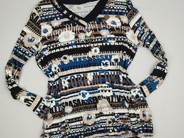 Bluzka damska z długim rękawem, lekka i półtransparentna, wykonana w 100% z poliestru (metka). Luźny, tunikowy krój z dekoltem typu łódka. Materiał miękko się układa i szybko schnie. Wzór: tie-dye...