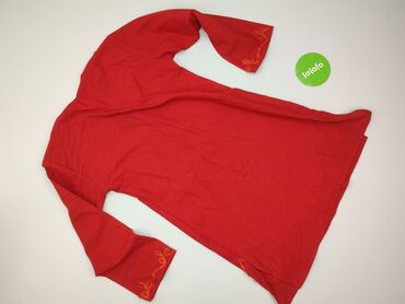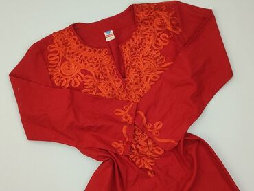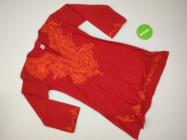Czerwona tunika/bluzka damska INDYSKA, rozmiar M. - Fason: kopertowy dekolt w serek, odcinana pod biustem, lekko rozkloszowana w dół - Rękawy 3/4 z ozdobnymi zakładkami i koronką - Góra z haftem d...