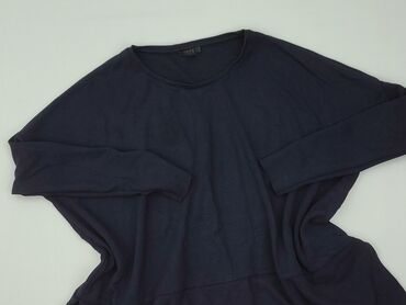 Granatowy sweter/tunika damska z dzianiny 100% bawełnianej - Fason oversize z obniżoną linią ramion i zwężanym dołem – świetnie układa się na sylwetce, można nosić jako dłuższy sweter lub tunikę. ...