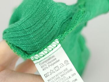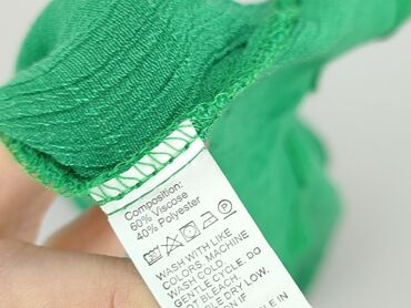 Zielona tunika/bluzka damska z krótkim rękawem. - Fason: luźny, z marszczeniem przy dekolcie i na ramionach; wiązania na końcach rękawków oraz po bokach u dołu (możliwość lekkiej regulacji długośc...Stan: