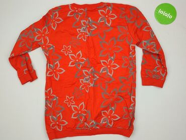 Bluzka damska z długim rękawem, półtransparentna, z elastycznej siateczki. Nadruk w duże, rozmyte kwiaty w odcieniach pomarańczu, żółci i jasnego różu z akcentami błękitu – efekt tie-dye/retro. Kró...