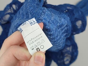 Niebieska tunika/bluzka damska z falbaną - Krój: luźny, asymetryczny dół z szeroką, marszczoną falbaną - Rękawy: 3/4, lekko bufiaste z delikatnymi marszczeniami - Dekolt: okrągły - Materiał: cienk...