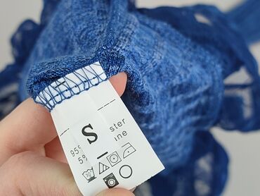 Bluzka damska w kolorze niebieskim. - Krój: lekko dopasowany, dekolt w serek (V-neck), krótkie rękawy - Rozmiar z metki: 36 - Długość: tunikowa - Kieszenie: dwie naszywane z przodu po bokach - Tył...