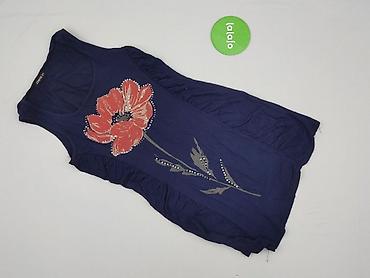 Sukienka damska bez rękawów, rozmiar XL. - Kolor: granatowy z nieregularnym, białym wzorem plamek/pędzla. - Fason: luźny, lekko rozkloszowany dół, okrągły dekolt. - Zapięcie: suwak z tyłu. - Ma...