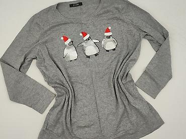 Szara damska tunika/sweterek EVANS z długim rękawem i okrągłym dekoltem. Na przodzie aplikacja z trzech pingwinów w czerwonych czapkach Mikołaja, wykonana z cekinów/nasadek, nadająca świąteczny charakter.