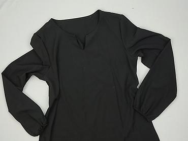 Damska bluzka/tunika z długim rękawem, czarna. - Fason: lekko rozszerzana, z delikatnym marszczeniem w talii - Dekolt: w kształcie litery V - Zapięcie/dekor: rząd ozdobnych guzików z przodu - Dół:...