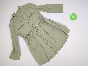 - Fason: koszulowy, odcięcie w talii z delikatnymi marszczeniami; przód zapinany na rząd guzików