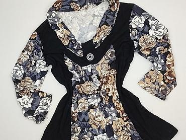Bluzka/tunika damska z długim rękawem – wzór w odcieniach niebieskiego - Fason: prosta tunika z okrągłym dekoltem, długość zakrywająca biodra - Rękawy: długie - Wzór: gęsty roślinny/ornamentalny p...Stan: