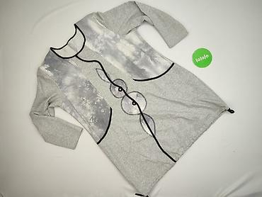 Sukienka/tunika damska z dzianiny, szaro‑grafitowa z artystycznymi wstawkami.