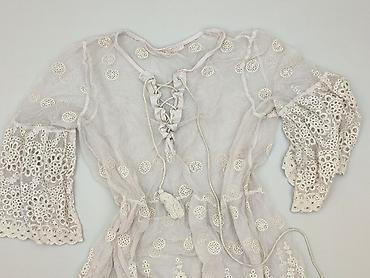 Ażurowa bluzka/tunika damska - Kolor: jasnoszary/srebrzysty - Materiał: koronkowa siatka z okrągłymi motywami (gęsto szydełkowana struktura, lekko prześwitująca) - Krój: luźny, tunikowy - Dekolt: ...