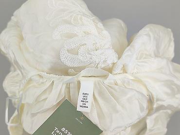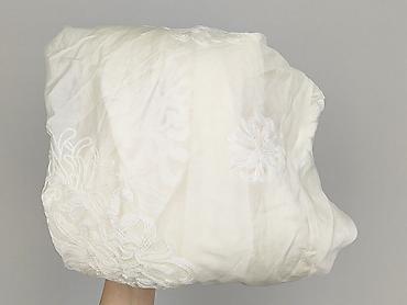 - Detale: bogaty, roślinny haft w tonacji bieli na całej powierzchni; półtransparentna tkanina o lekko pomarszczonej fakturze