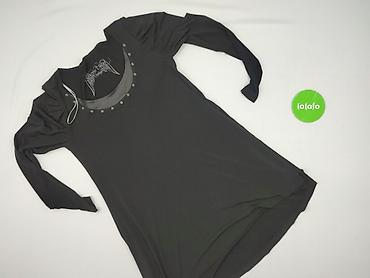 Czarna tunika damska z długim rękawem - Rozmiar: M (metka widoczna na zdjęciu) - Krój: prosta, lekko rozszerzana ku dołowi - Dekolt: okrągły z subtelnym rozcięciem w kształcie litery V - Rękawy: d...