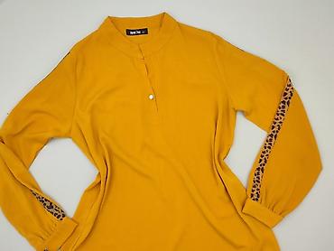 Żółta koszula/tunika damska z kapturem - Krój: długa koszula tunikowa, zapinana na guziki z przodu - Rękawy: krótkie - Kaptur z troczkami - Dwie kieszonki z klapkami na piersi (dekoracyjne) - Zaok...