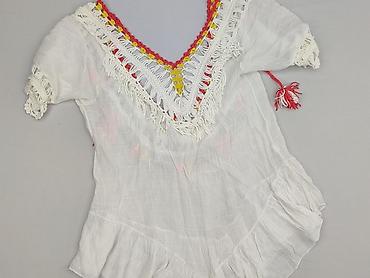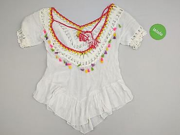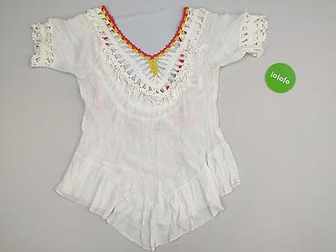 Biała, lekka tunika/narzutka plażowa z naturalnej, marszczonej tkaniny 100% bawełna (metka). - Krój luźny, nietoperzowe rękawy. - Dekolt w serek ozdobiony pasem cekinów w perłowych, pastelowych o...Stan: