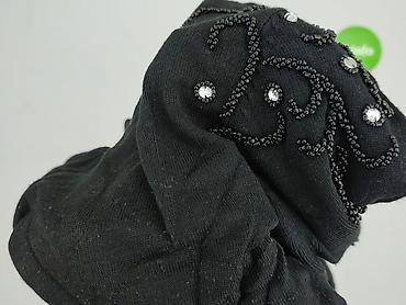 Czarna sukienka/sweterkowa tunika damska z długim rękawem i szerokim, prążkowanym ściągaczem u dołu oraz przy mankietach. Dekolt lekko opuszczany na jedno ramię. Na jednym ramieniu ozdobne aplikacje z koralików i błyszczących dżetów w roślinne wzory.