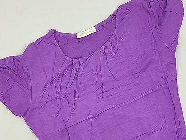 Fioletowa tunika/bluzka damska z krótkim rękawem - Kolor: intensywny fiolet - Krój: luźny, lekko marszczony przy dekolcie i na rękawkach; szerszy dół typu tunika - Dekolt: okrągły - Rękawy: krótki...Stan: