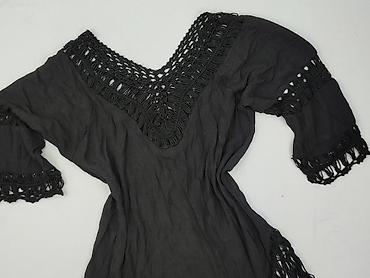 Sukienka/tuńczyk plażowy GEORGE, rozmiar M - Damska, czarna, lekko prześwitująca tkanina z delikatnymi pionowymi, srebrzystymi nitkami (98% poliester, 2% metalizowana przędza) - Głęboki dekolt w k...