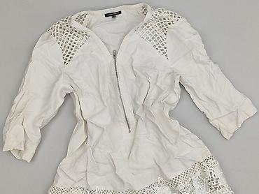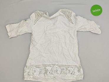 Biała tunika damska Magalie Pairett, rozmiar M. - Fason: luźna, lekko wydłużona tunika/bluzka z krótkim, motylkowym rękawem - Dekolt: w kształcie litery V, zdobiony plecionką oraz kontrastowymi cz...