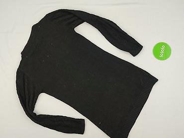 Damski sweter/tunika z dzianiny, czarny z geometrycznym wzorem. - Krój: wydłużona tunika, dopasowana w talii, za biodra - Dekolt: okrągły - Rękaw: długi - Dzianina: średniej grubości, elastyczna -...Stan:
