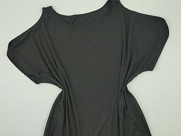 Czarna tunika/sukienka damska Giocco, rozmiar S/M. - Fason oversize z asymetrycznym dołem - Dekolt łódka - Ozdobne taśmy/sznurki po bokach przełożone przez metalowe oczka – możliwość lekkiego ścią...