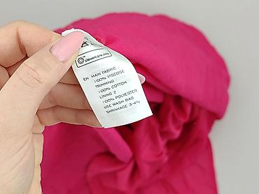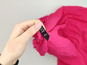 Różowa tunika/bluzka damska z krótkim rękawem. - Kolor: intensywny róż - Krój: luźna tunika z odcięciem pod biustem; dekolt półokrągły z małą kokardką; rękawy krótkie, lekko bufiaste - Materiał: l...Stan: