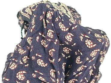 - Kolorystyka: granatowa baza z drobnym, jasnoróżowo‑beżowym motywem roślinnym/paisley; kontrastowe beżowe panele z etnicznym wzorem na karczku i u dołu