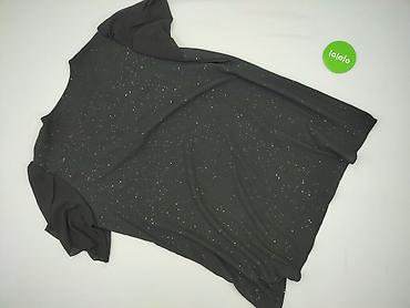 Czarna bluzka damska z elastycznej, plisowanej tkaniny - Fason: luźny, lekko oversize, z krótkimi rękawami typu kimono - Dekolt: okrągły - Wzór/struktura: drobne, wytłaczane prążki (crinkle), delik...