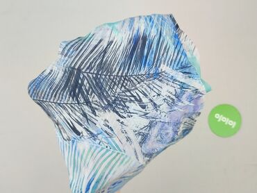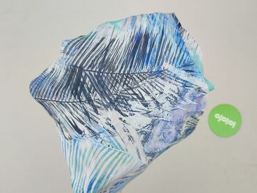- Wzór: tropikalne liście/palmy w odcieniach błękitu, turkusu, fioletu i bieli; drobne połyskujące aplikacje na piersi