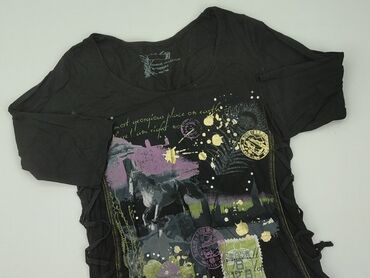Czarna bluzka/tunika z frędzlami na rękawach - Krój: prosta linia, długość tunikowa - Dekolt: szeroki, łódka - Rękawy: 3/4, wykończone dekoracyjnymi frędzlami - Materiał: gładka, miękka dzianina z...