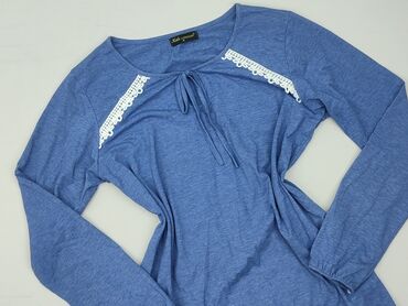Bluzka/tunika damska z długim rękawem – wzór w odcieniach niebieskiego - Fason: prosta tunika z okrągłym dekoltem, długość zakrywająca biodra - Rękawy: długie - Wzór: gęsty roślinny/ornamentalny p...