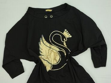Sukienka/tunika damska NU. (rozmiar 38) - Kolor: czarny - Fason: prosta, lekko przedłużona tunika z długim rękawem i okrągłym dekoltem - Charakterystyczny element: duża aplikacja z przodu w formie...