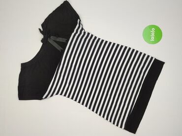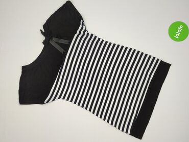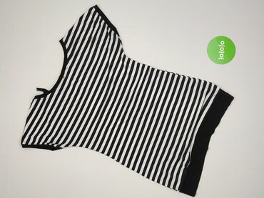 Asymetryczna tunika damska z dzianiny - Kolor: czarny z wstawkami w biało‑czarne pasy - Fason: luźny, asymetryczny dół; wydłużony po bokach - Rękaw: 3/4 - Dekolt: okrągły - Detale: dekoracyjne guz...