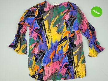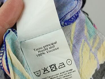 - Wzór: multikolorowy, malarski print z motywem kaligrafii; intensywne barwy (żółty, fiolet, róż, zielony, niebieski, czarny)