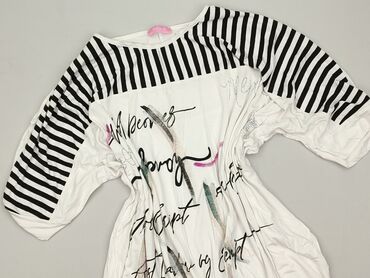 Tunika/sukienka dzianinowa MEGI Collection - Rozmiar z metki: S–M - Skład materiału: 96% bawełna, 4% elastan - Kolor: czarny w biały, abstrakcyjny nadruk liter/cyfr - Krój: luźniejszy, długość tun...