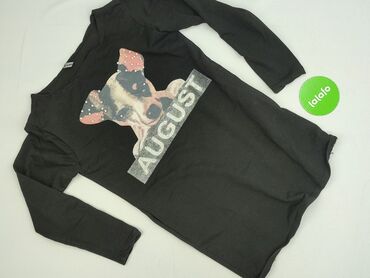 Długi rękawCzarna tunika/bluzka z długim rękawem marki Nuovo (na metce: NUOVO). Na przodzie duży nadruk psa oraz połyskujący napis AUGUST ozdobiony aplikacjami z perełek. Klasyczny, okrągły dekolt. Miękki, elastyczny materiał, dopasowany krój, długość za biodra – do noszenia jako dłuższa bluzka lub tunika do legginsów. Kolor: czarny z kolorowym nadrukiem i srebrzystymi detalami. Idealna na co dzień dla miłośników motywów zwierzęcych i błyszczących akcentów. Marka widoczna na wszywce.