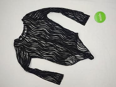 Czarne body damskie z siateczkowymi rękawami w grochy - Krój: kopertowy przód, dopasowana dolna część zapinana w kroku na napy - Rękawy: długie z transparentnej siateczki w kropki, zakończone szer...