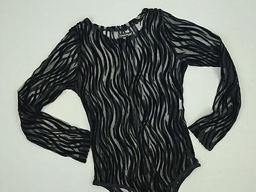 Czarne body damskie z krótkim rękawem - Krój: dopasowane body, dekolt szeroki/łódkowy (ramiona lekko odkryte), dół typu string - Rękaw: krótki - Rozmiar z metki: EU 38 / UK 10 / US S - Materiał: e...