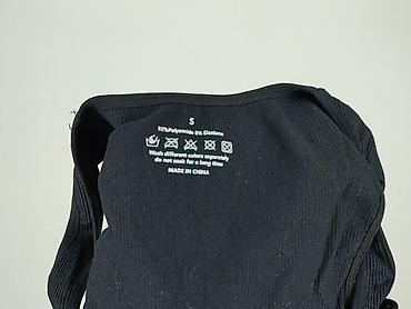 Czarny body damskie na ramiączkach - Fason: dopasowane body z zabudowanym dekoltem z przodu i z tyłu, na wąskich ramiączkach - Materiał: prążkowana dzianina, 95% poliester, 5% elastan – elastyczna...