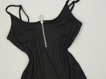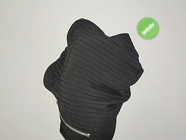 Czarne body damskie na ramiączkach, rozmiar S. Model z elastycznego, prążkowanego materiału, który ładnie dopasowuje się do sylwetki. Z przodu funkcjonalny zamek błyskawiczny z ozdobnym, okrągłym uchwytem. Klasyczny, prosty dekolt, podwójne cienkie ramiączka. Tył gładki. Idealne do stylizacji casual i wieczorowych – świetnie wygląda z jeansami, spódnicą lub pod marynarką.