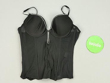 Koronkowy top biustonoszowy – czarny, rozmiar M - Model: krótki top typu bralette/bustier z miseczkami i fiszbinami, zakończony delikatną koronkową falbaną. - Kolor: Black (czarny). - Materiał: ...