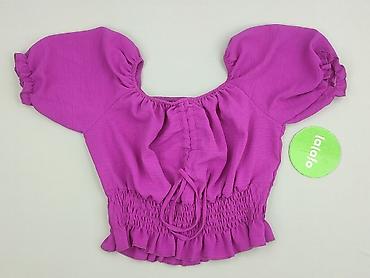 Krótki top/bolerko SHEIN dla kobiet - Kolor: intensywny fuksja - Krój: krótki, wiązany z przodu na długie troczki - Rękawy: bufiaste, do łokcia, z dekoracyjnymi zakładkami - Dekolt: głęboki V - Ma...