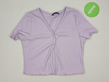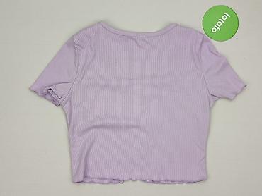 Fioletowy krótki top damski - Krój: crop top, szerokie krótkie rękawy - Dekolt: łódka z przodu - Tył: efektowne wycięcie z dwiema dekoracyjnymi kokardkami/wiązaniami pośrodku - Materiał: miękka, c...