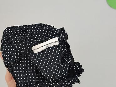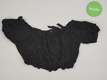 Czarna bluzka hiszpanka w drobne białe kropki dla kobiety. Lekka, zwiewna tkanina, elastyczne gumki przy dekolcie, w pasie i na dole, które dopasowują bluzkę do sylwetki. Krótki, luźny fason typu crop. Rękawy bufiaste z możliwością noszenia na lub poniżej ramion. Dekolt regulowany wiązaniami po bokach/na ramionach. Brak widocznych metek z rozmiarem i składem (ucięte). Idealna do letnich stylizacji, spódnic i spodni z wysokim stanem. Stan: używana. Przeznaczenie: kobieta, nie dla niemowlęcia.