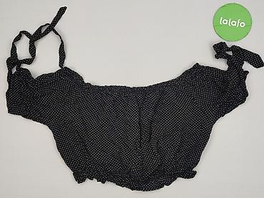 Czarna krótka bluzka w białe kropki dla kobiet. - Krój: krótki top z głębokim dekoltem w kształcie serka/kwadratu, wiązanie na środku biustu. - Rękawy: krótkie, bufiaste, wykończone elastyczną gum...