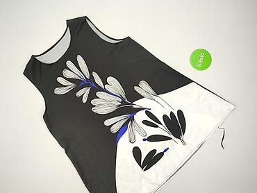 Top damski bez rękawów - Krój: luźny, z zaokrąglonym dołem i głębszym wycięciem pod pachą - Dekolt: okrągły - Wzór: czarno‑biały, geometryczno‑kwiatowy (regularny print na całej powierzchni) - Mat...