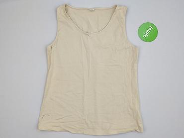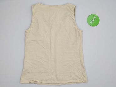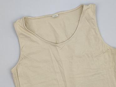 Beżowy top bez rękawów – damski - Rozmiar: XL (metka) - Krój: prosty, luźniejszy, okrągły dekolt, szerokie ramiączka - Materiał: 100% poliester – lekki, przewiewny, z delikatną, lekko lnianą faktu...